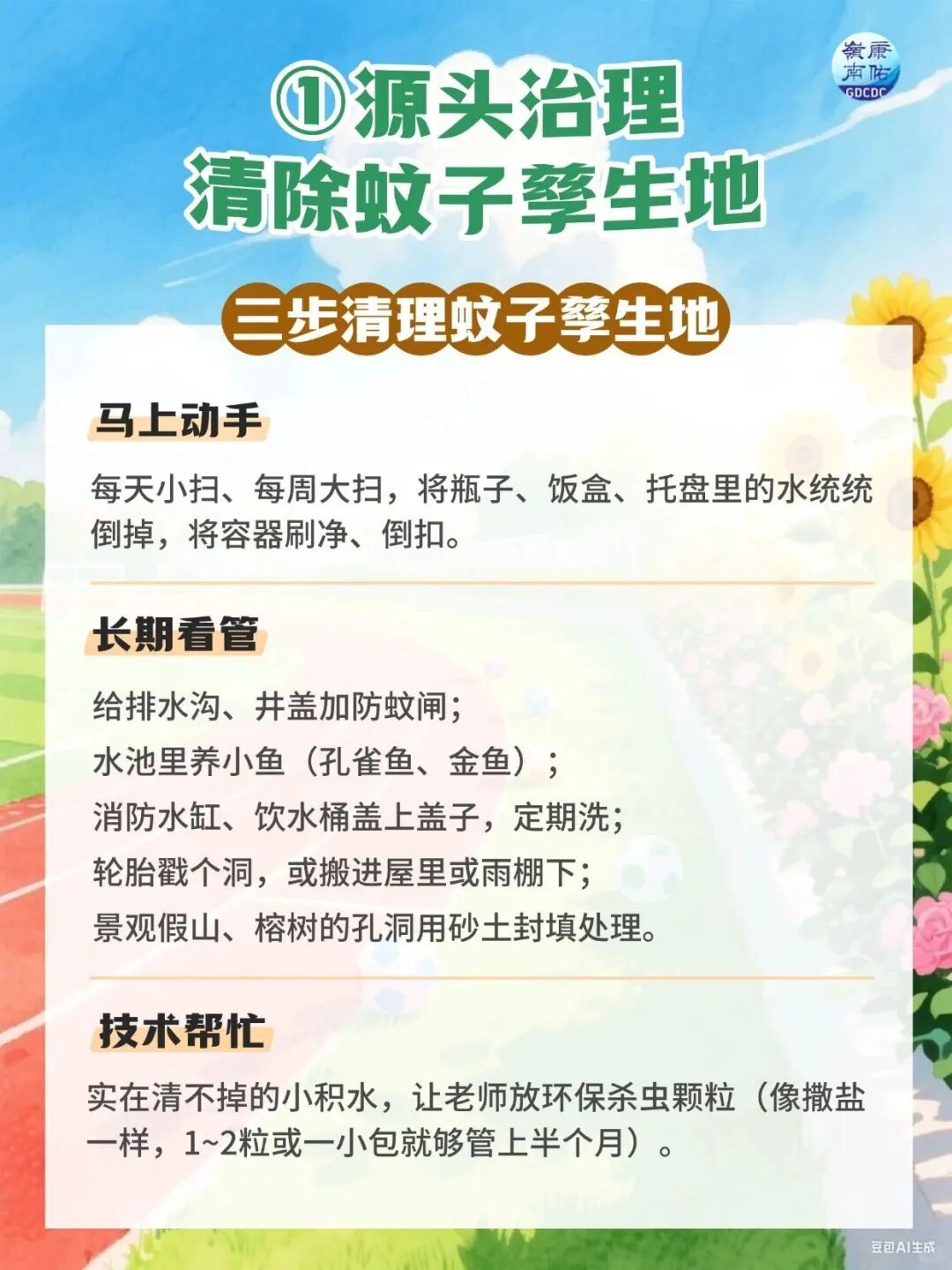 蚊子繁殖与积水环境密切相关,其幼虫(孑孓)的初期发育依赖水体,即便是校园内瓶盖大小的积水,也可能成为蚊子的繁殖场所。让我们跟着海报共同行动,携手营造无蚊虫侵扰的校园环境▼